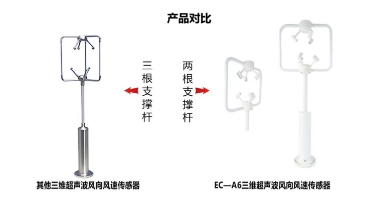 兩根支撐桿對(duì)比三根支撐桿的優(yōu)勢(shì)在于當(dāng)實(shí)際測(cè)量風(fēng)向風(fēng)速時(shí),減小支撐桿產(chǎn)生的風(fēng)阻,使測(cè)量結(jié)果更精確。