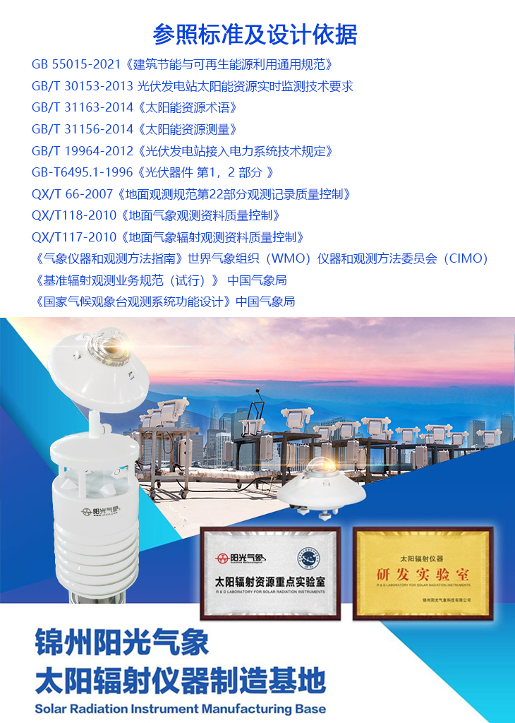 本產品是針對光伏發電站研發生產的一款最新型一體化光伏環境監測儀,該設備采用新型一體化結構設計,測量精度高,安裝使用方便,可采集多種要素:含太陽輻射(水平/斜面)、溫度、濕度、風速、風向、大氣壓力、背板溫度等要素,要素可按需定制。