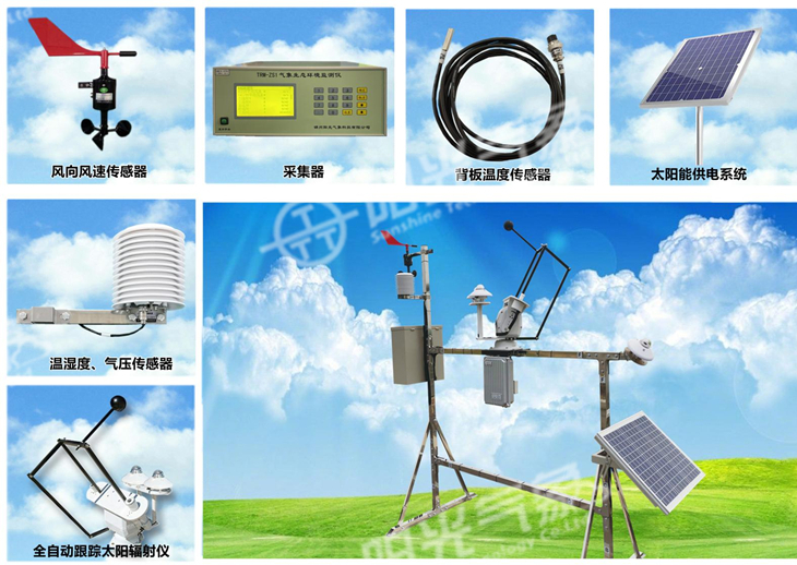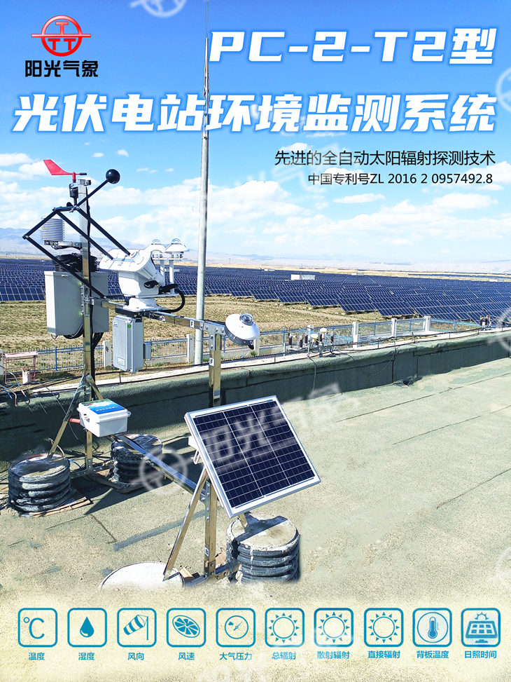 PC-2-T2型光伏電站環境監測系統是我公司按照氣象WMO組織氣象觀測標準及IEC、國電網公司企標Q/GDW 617-2011《光伏電站接入電網技術規定》、國電網公司企標Q/GDW 618-2011《光伏電站接入電網測試規程》等規范標準設計生產研發的新型光伏電站環境監測站,同時也符合《并網光伏發電系統工程驗收技術規范》等相關技術要求。本系統可觀測的環境輻射要素有:環境溫度、環境濕度、組件溫度、風速、風向、氣壓、傾斜總輻射、日照時數、水平總輻射、太陽直接輻射、太陽散射輻射等指標。具有性能穩定,檢測精度高,完全無人值守等特點,可滿足光伏電站環境氣象監測、太陽輻射監測等相關要求。