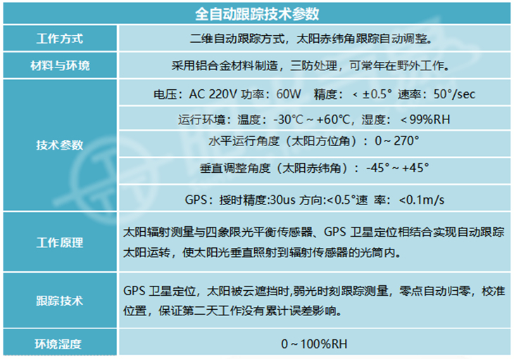 3、自主研發的太陽輻射儀是目前國內最先進的無人值守型太陽輻射儀器,解決了傳統的光伏電站太陽輻射儀器需要人工維護的弊病,真正實現了全自動化測量的要求,它是將機器人控制技術與輻射測量技術完美結合的產品,系統采用太陽光追蹤+旋轉角度測量+輻射強度測量+GPS衛星定位追蹤等