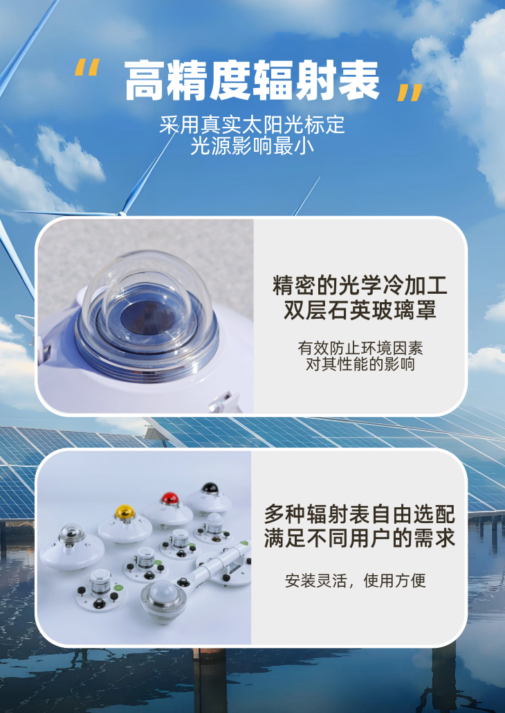 產(chǎn)品適用于氣象氣候、生態(tài)環(huán)境、農(nóng)業(yè)墑情、林區(qū)環(huán)境、水利信息、建筑節(jié)能、太陽(yáng)能光伏、太陽(yáng)能集熱等科研及教學(xué)領(lǐng)域。