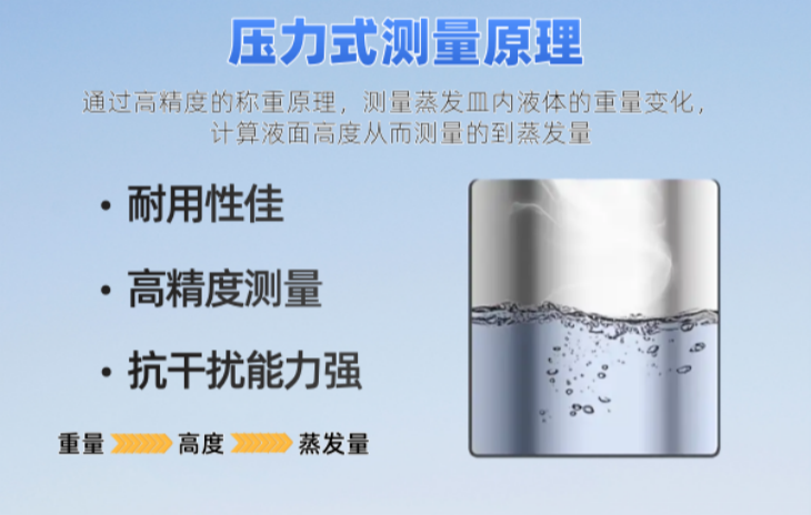 蒸發傳感器的工作原理基于高精度的稱重技術,通過測量蒸發皿內液體的重量,進而計算出液面高度,因此,該傳感器適用于多種環境條件。這一設計有效解決了使用超聲波原理測量液面高度時存在的結冰狀態下測量不準確、無水時易損壞傳感器以及精度低等弊端,能夠與自動氣象站或專業蒸發記錄儀無縫配合使用。